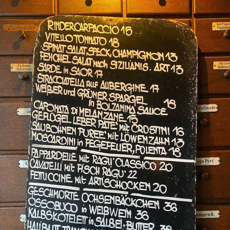 Da wir jeden Tag andere Speisen anbieten, gibt es bei uns keine feste Speisekarte. Täglich gibt es bei uns neue, hochwertige, italienische Speisen. Deshalb finden Sie bei uns eine Tafel auf der alle Gerichte des Tages verzeichnet sind. So können Sie sich die Tagesgerichte vorstellen: